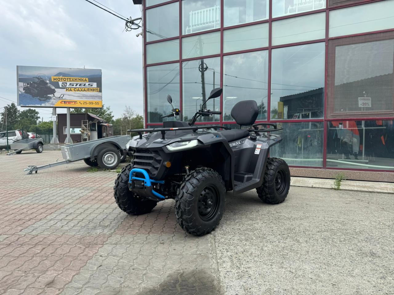4-тактный, одноцилиндровый, DOHC Объем двигателя, см3: 499 Система питания: Инжектор Макс мощность, л.с./кВт/ (об./мин.): 39 Макс. крутящий момент, Nm (об./мин): 42 Система запуска: Электростартер Коэффициент сжатия: 10.6:1 Тип трансмиссии: Автоматическая вариаторная CVTech Коробка передач: L-H-N-R-P Система привода: 2WD / 4WD/ 4WD Lock Передний мост: Принудительное подключение с возможностью блокировки дифференциала Задний мост: Постоянный, с блокировкой заднего дифференциала Передняя подвеска: Двойные A-образные рычаги, ход 180 мм Задняя подвеска: Двойные A-образные рычаги + стабилизатор поперечной устойчивости, ход 200 мм Амортизаторы: Масляные амортизаторы с регулировкой сжатия и отбоя Шины: Передние: 25×8.00-12 / Задние: 25×10.00-12, OBOR Диски: 12", стальные Рама: Рама стальная Рулевое управление: С EPS Тормозная система: Гидравлическая, 3-дисковая Стояночный тормоз: Задний тормоз механический парковочный / P Gear Park Система охлаждения: Жидкостная с применением жидкостно-масляного теплообменника Объем топливного бака, л: 19 Колесная база, мм: 1450 Дорожный просвет, мм: 250 Габаритные размеры, мм (Длина/Ширина/Высота): 2210 × 1150 × 1400 Сухая масса не менее, кг.: 370 Полезная нагрузка, кг: 270 Грузоподъемность багажных платформ, кг: Передняя 40 / Задняя 60 Рекомендуемая масса буксировки, кг: 612 LCD (цифровой дисплей): Приложение Smart-Moving Сиденья: Двухместное со спинкой пассажира Лебедка: Нет Фары: LED (светодиодные) Наличие фаркопа: Есть